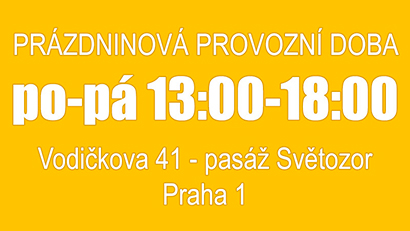 od 1.7. do 31.8.2015 má naše prodejna ve Vodičkově ulici zkrácenou provozní dobu: po-pá 13:00-18:00 hod.